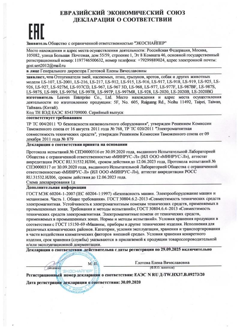 Купить отпугиватель грызунов и насекомых «Экоснайпер LS-927M» по низкой цене в Кропоткине очень просто: для этого достаточно оставить заявку нашим операторам в онлайн-чате или по email.